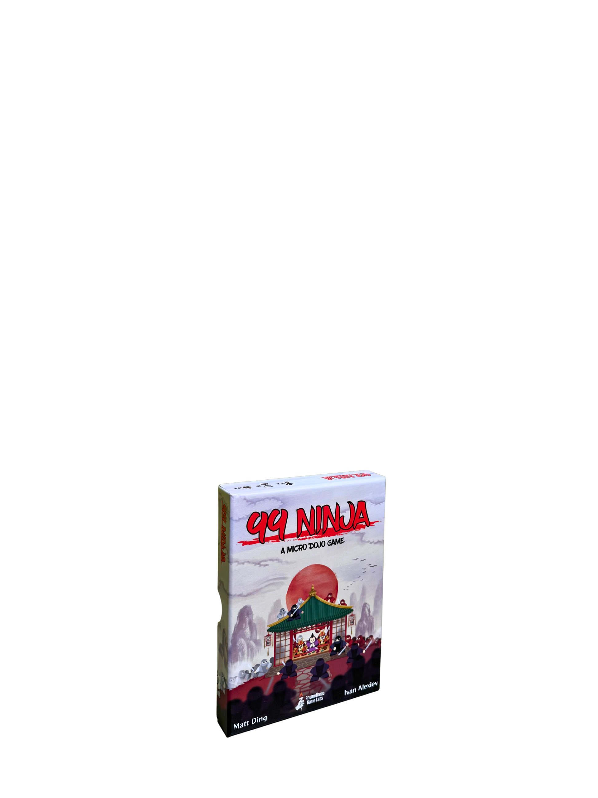 99 Ninja is a two player competitive tile laying game, where players use transparent cards depicting ninja from 3 different clans to surround (and assassinate) daimyo. Like other games from Prometheus Game Labs there is a lot of tactical play – you will have to time your placement and outmaneuver, but also out think, your opponent! And yes, there are 99 ninja on the cards. We counted.