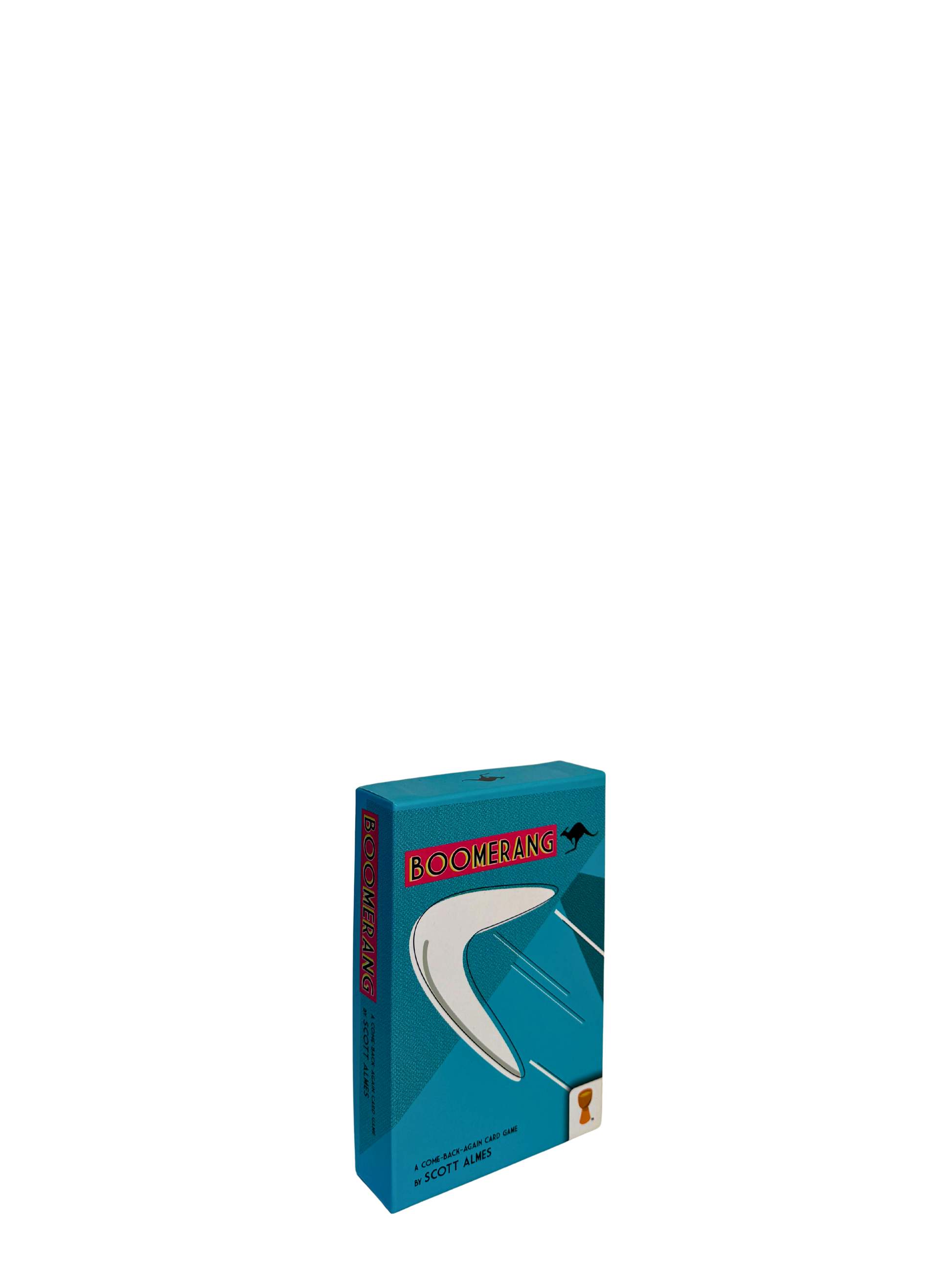 In Boomerang, the "come-back-again" card game, players travel round the great south land, trying to see and do as much as possible Ñ but will the cards you want to see come back to you? Boomerang could be described as a card-drafting game (like 7 Wonders or Sushi Go!) mixed with a roll-and-write game (like Yahtzee or Qwixx). Each turn, players select one card from their hand to play, then pass the rest of their cards to the next player. Will you take what you really want, or a different card so as to deprive another player of something cool? At the end of each round, players mark different things off on their score sheets, corresponding to what they earned from the cards they selected. Players earn points for seeing sights, collecting Australiana, seeing animals, and so on. After five rounds, the player with the most points wins.