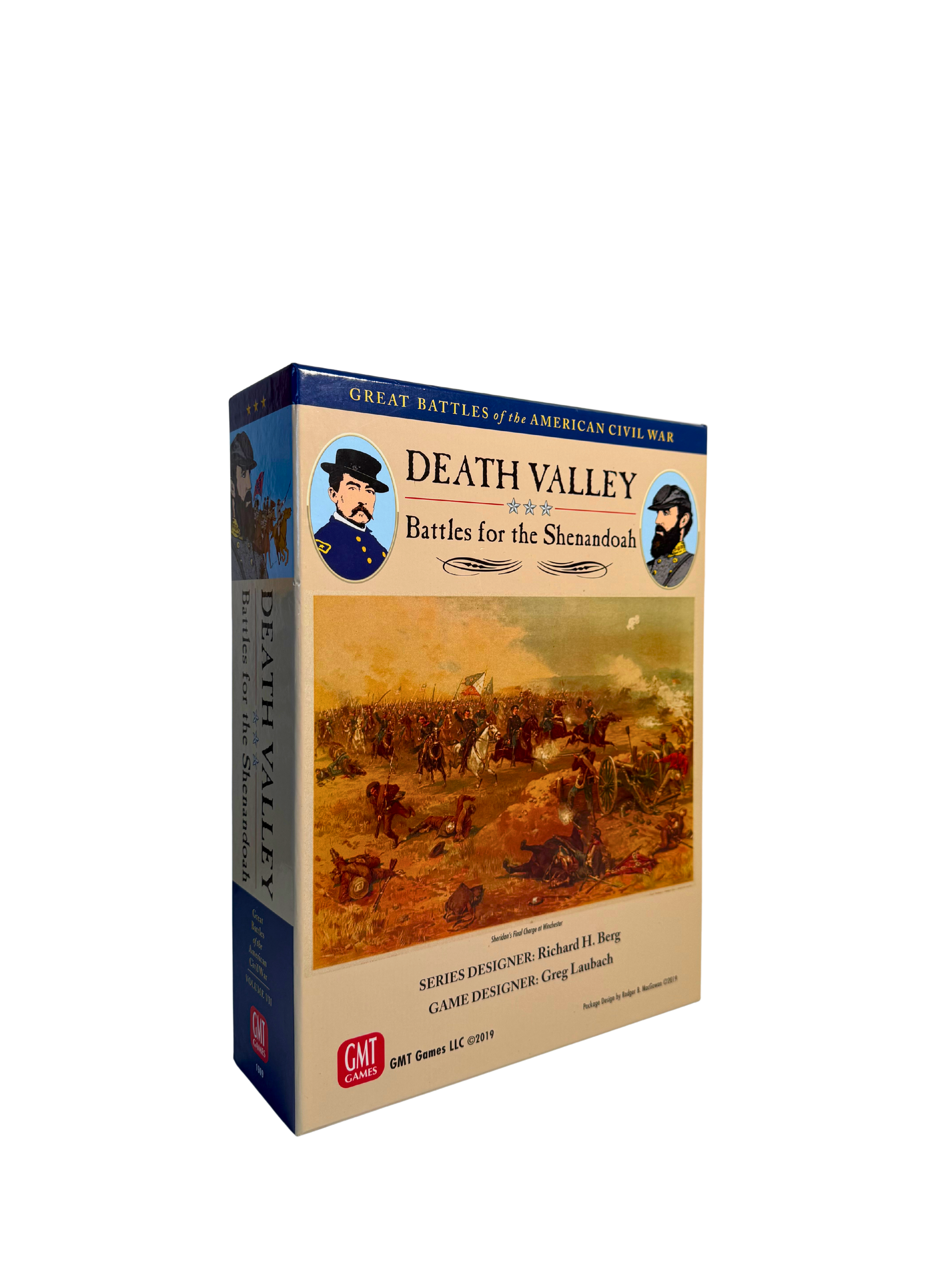 Death Valley: Battles for the Shenandoah is the seventh installment of the Great Battles of the American Civil War (GBACW) series, published by GMT Games. Death Valley: Battles for the Shenandoah contains eight battle games with multiple scenarios. They range from division level contests on half sized maps to two map battles between armies. Experienced players will be able to play many of the scenarios in one sitting. The rules compare the development of the cavalry, and the changes in infantry and artillery organization and tactics in 1862 and 1864. Three Battles of the Shenandoah Valley Campaign of 1862 In a campaign still studied in military academies, Confederate General Thomas J. (Stonewall) Jackson engaged and defeated the Union forces pursuing him. Greatly outnumbered and at times facing three Union armies, Jackson defeated them all within ten weeks, at one point completely freeing the Shenandoah Valley of Union forces. Three battles from Jackson’s 1862 Valley Campaign are featured. Kernstown, March 23, 1862 Winchester, May 25, 1862 Cross Keys and Port Republic, June 8-9, 1862 Five Battles of the Shenandoah Valley Campaigns of 1864 New Market, May 15, 1864 2nd Kernstown, July 24, 1864 3rd Winchester, September 19, 1864 Fisher's Hill, September 22, 1864 Cedar Creek, October 19, 1864 The Great Battles of the American Civil War Series: This series is one of the hobby’s longest-lived design concepts, springing from the legendary regimental level Gettysburg game – Terrible Swift Sword (SPI) – designed by Richard Berg in 1976. Under GMT, the rules system has remained stable, but has shown remarkable flexibility to allow each game to smoothly incorporate additional rules to reflect the historical battles. The series relies on interactive chit-pull mechanics to simulate the oftentimes-chaotic nature of the 19th Century battlefield at the regimental level. Changes have been made to the series rules for Death Valley in order to enhance their clarity and simulation value. Veteran players will find the revised rules to be very familiar, with the main differences being in the user-friendliness of the rulebook, as well as how the game "feels", especially for players versed in Civil War tactics. Components: 1960 counters Three 22" x 34" double-sided maps Two 17" x 22" double-sided maps One GBACW series rules booklet Two Battle booklets Sixteen Activation and Turn Record charts Two Player Aid Cards One Terrain Effects Chart One 2nd Disorder Chart Two 10-sided dice TIME SCALE: Each Turn = 1 Hour MAP SCALE: 145 Yards Per Hex with 25-Foot Elevations UNIT SCALE: 50 Men or 1 Cannon per Strength Point
