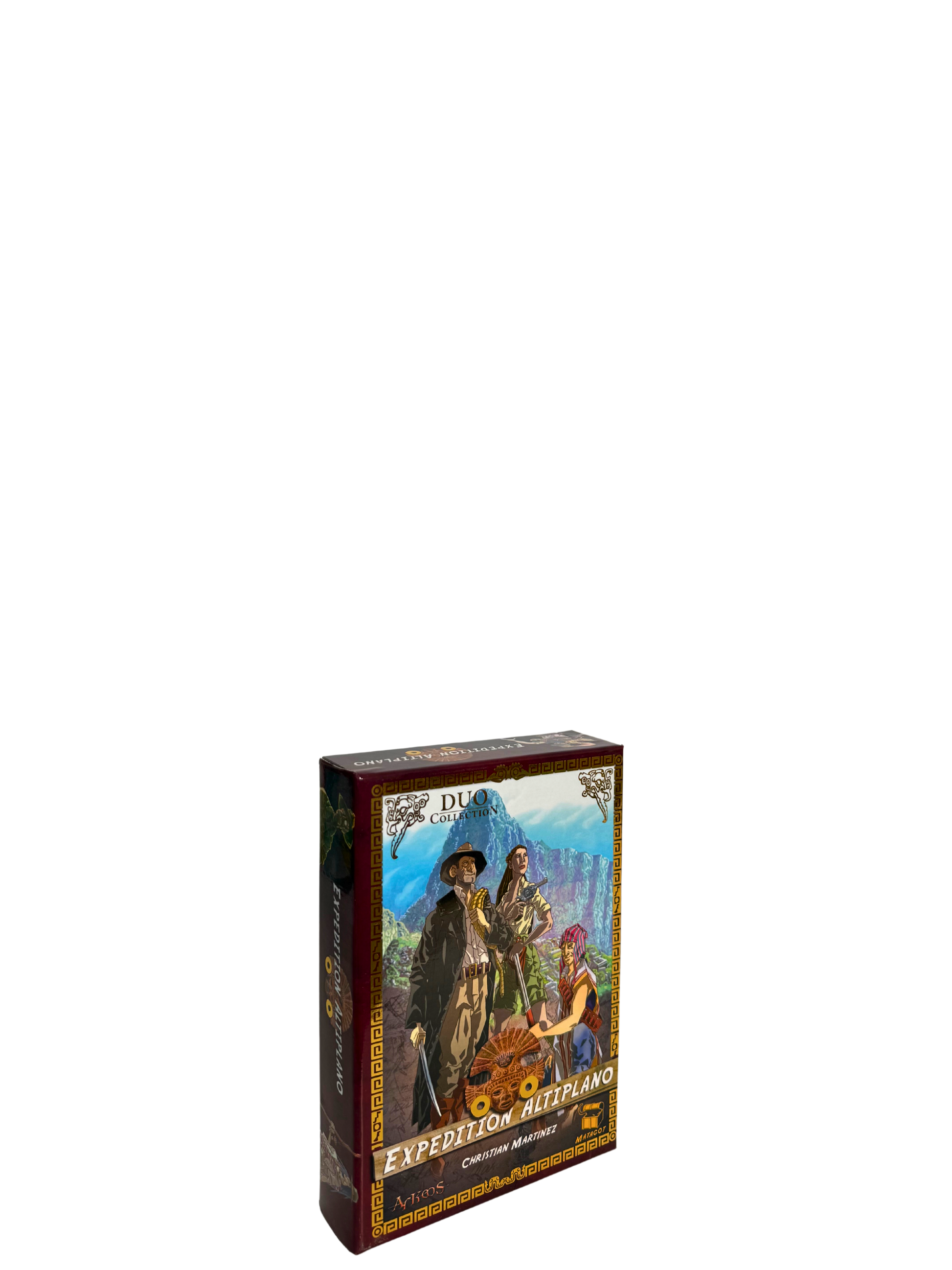 This is a game for two treasure hunters in ancient Inca ruins. You are both looking for the same relics. But first you put together your exploration team out of archaeologists and soldiers of fortune by drafting cards from the central pile. During the game you can poach staff members off your adversary or salvage a staffer from deadly traps. You do all this to meet the required conditions to find those rare treasures. And because they're rare you'd better not miss them.