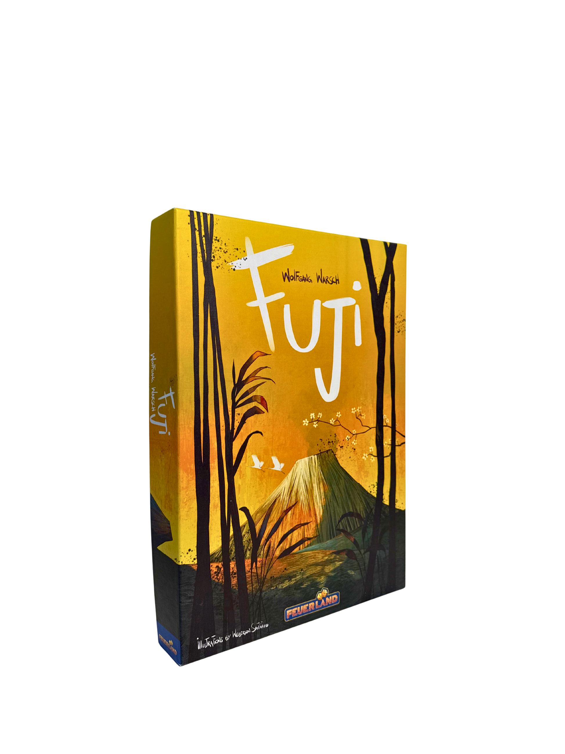 In Fuji, you play as a group of adventurers on their way to JapanÔs most famous volcano, Mount Fuji. But just before you arrive at your destination, the earth begins to shake and the volcano erupts! Now your group must escape the deadly lava flows as quickly as possible to reach the safe village. In this cooperative dice game, players simultaneously and secretly roll their dice behind their screens in each round. During the game, you must find the best way across a certain number of terrain cards to the safe village for each player. Each terrain card has a given dice requirement. You can move to a card only if you match this requirement better than both your neighbors Ñ but since you know only your own dice and can communicate only vaguely, you will need both skill and luck to save yourselves. The game ends with a success if all players reach the village. It fails if one of you falls victim to the lava or becomes too exhausted to proceed.