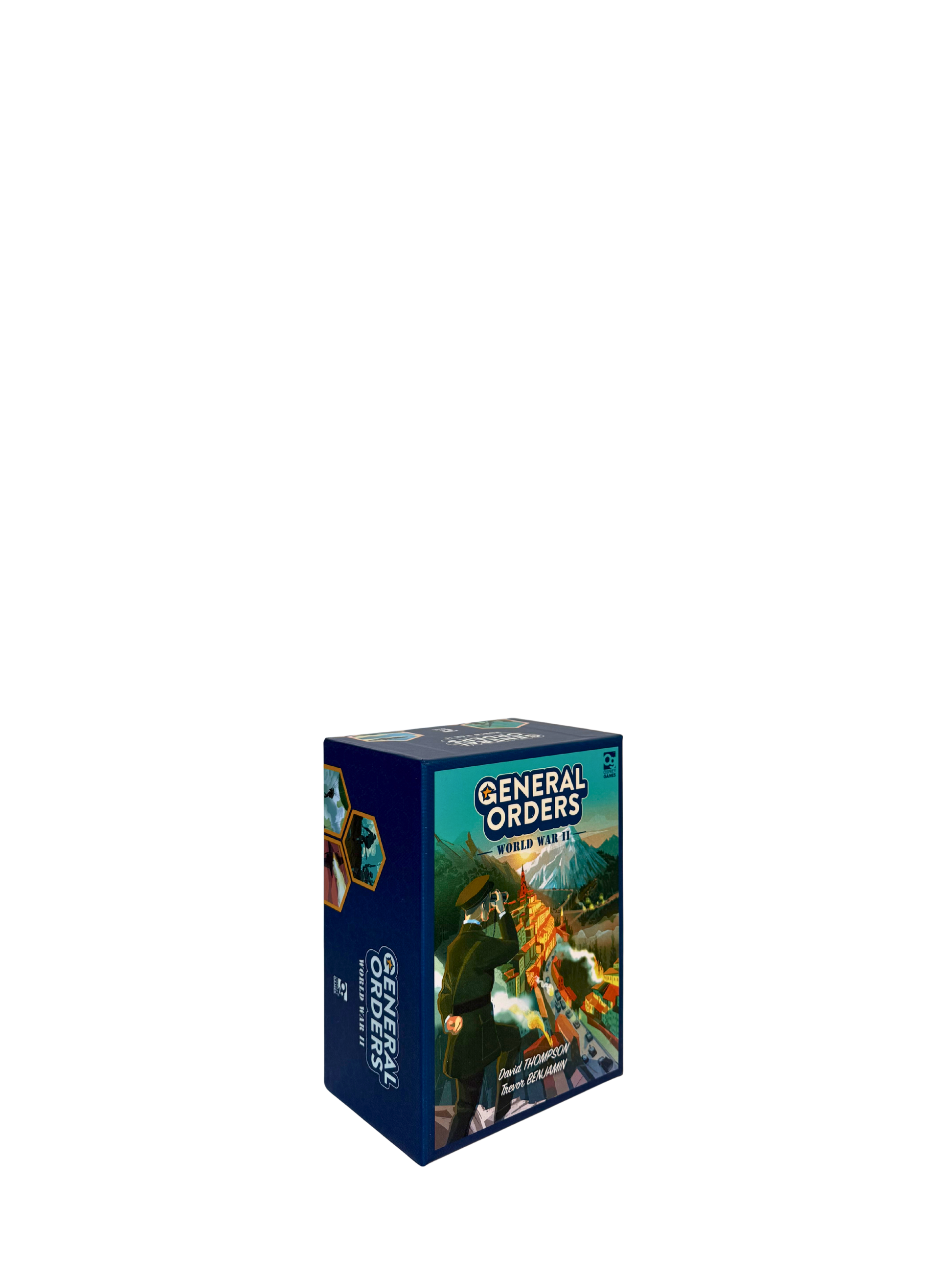 General Orders: World War II pits competing commanders against each other in a tug of war for control over a crucial Second World War battlefield, either in the mountains of Italy or the islands of the Pacific. Players strive to seize crucial strategic assets that unlock special abilities, and prevent their opponents doing the same. Balance the desire to gain these advantages with the need to secure supply lines, ward off aerial assault and artillery barrages, and protect your vulnerable headquarters in this compact and elegant two-player game.