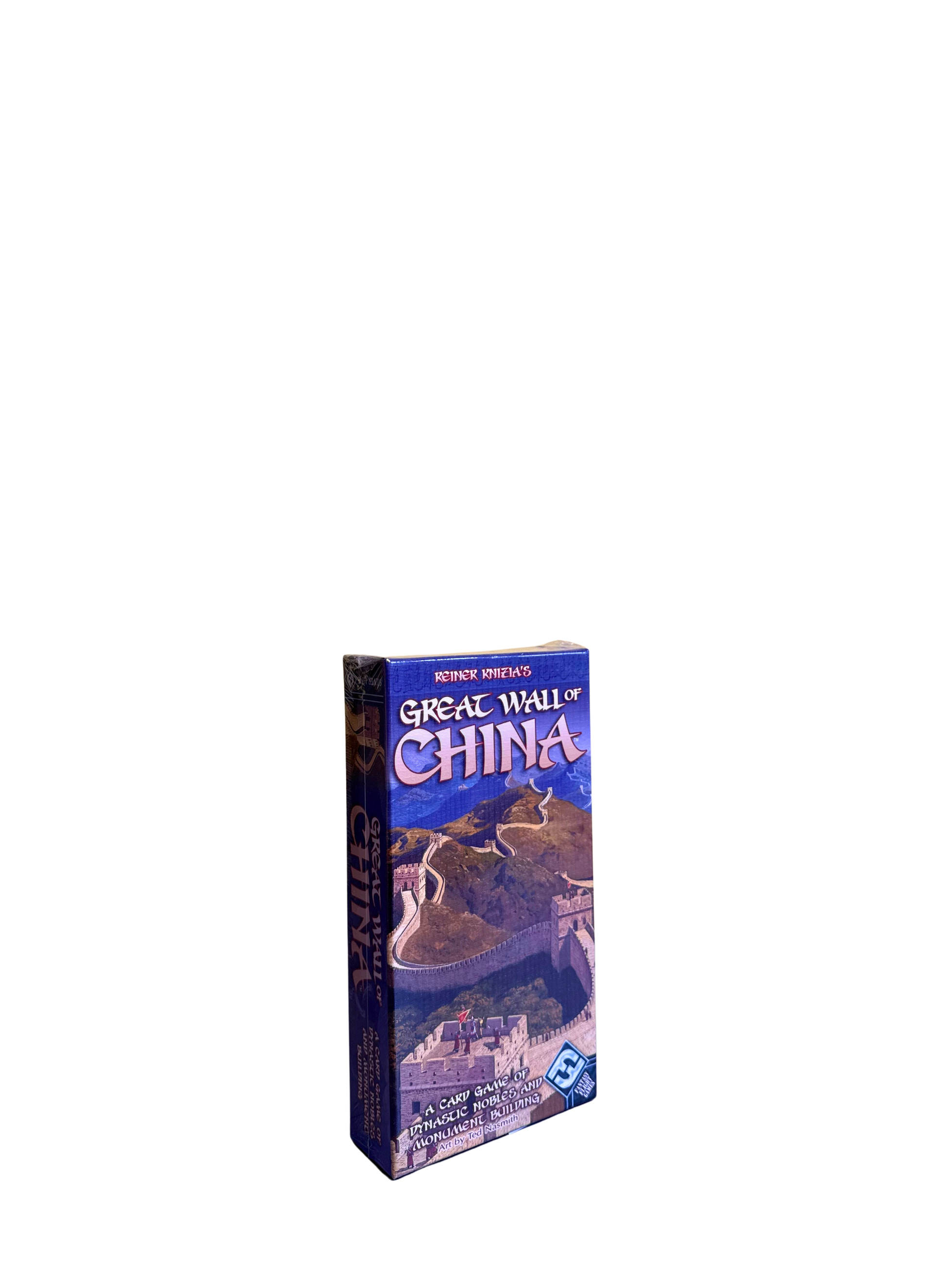 This game lets each player take on the role of a Northern Chinese prince. Their task: the construction of a massive wall. Their reward: Honor everlasting! To gain the honor, though, requires some sweat. The requirements are the same for each player. Each player has a set of cards in their color: seven wall cards (worth 1 point), three gate cards (worth 2 points) and one watchtower card (worth 3 points). Additionally, each player gets nine more cards of varying point values and which may also allow special actions to be carried out. At the start of the game, each player shuffles their deck of 20 cards and places it face-down in front of themselves. They then draw five cards from the deck. Now, depending on the number of players, 2 to 4 pairs of prestige tiles (with values from 1 to 8) are set out as the starts of card rows. On a player's turn, they first check to see if they have a point majority in any of the card rows. Then, they carry out two additional actions. They have the choice of either drawing another card from the deck or adding cards to one of the rows. The added cards must be identical. It is then the next player's turn. If, when checking point totals, a player sees that they have one or more majorities, they then choose one of the prestige tiles and put it onto one of their cards in that row. That prestige comes at a price: as long as the second prestige tile isn't claimed, the value of the prestige is subtracted from that player's total for that row. Once the second tile is claimed (which can be by the same player on a later turn), then both winning players set the tiles they won aside to score. Two new prestige tiles are revealed and the prestige for that row replenished. The fight for prestige is also influenced by cards with special actions. For example, if a 'noble' card (1) is played, then the values of all cards in that row are reduced to 1. A 'dragon' card (1) can be played onto another player's card, neutralizing it. 'Cavalry' (2) are worth 2 points, and, equally valuably, do not cost an action. 'Infantry' (5) are strong in groups. A single 'infantry' card is only worth 1 point, but the next one is worth 2, and then 3, etc. The game ends either when one player has played their last card or when the last prestige tile is taken. Afterwards, each player gets one last turn and then all card rows are resolved in turn order. The player with the most prestige at the end of the game wins. Players only receive prestige for tiles they have set aside for scoring. Tiles remaining on wall segments do not score.