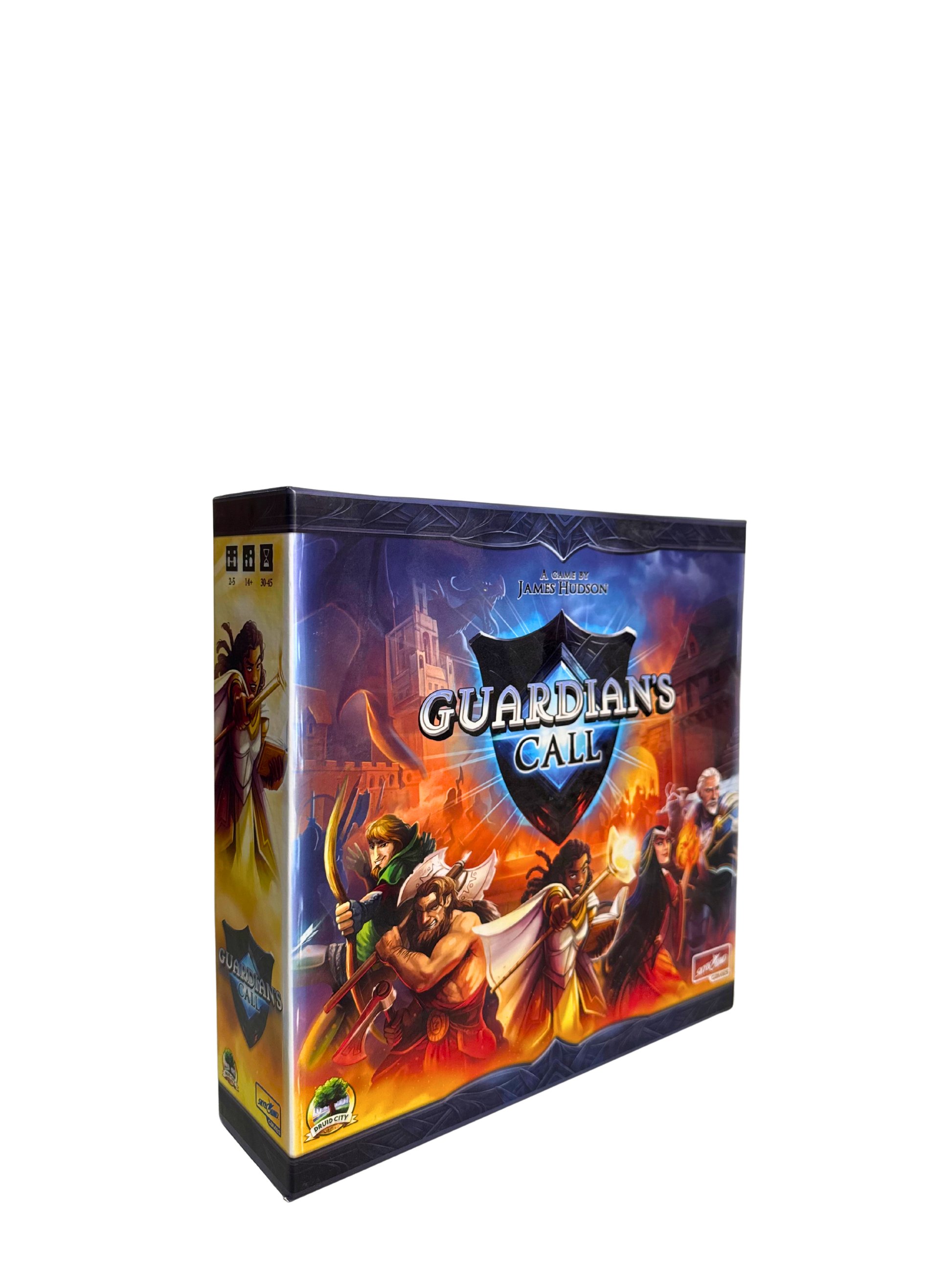 There is danger in the West... Ferocious orcs are raiding and pillaging, and behind them comes the mighty dragon, Golianth. You are a Guardian, one of the five rival heroes sworn to defend the realm. The King has decreed that you must work together to send weapons and shields, search for ancient artifacts and call on the power of magical spells, all while bringing villagers to safety within the Castle. There are many Guardians, but there can only be one Guardian of the Realm, the leader who will lead their combined strength to victory. Bring the greatest resources to the Council and save the most villagers and you will be named the Guardian of the Realm. Overview Guardian’s Call is a bluffing and deduction game for 2-5 players. Each player takes the role of a renowned Guardian, a leader of one of the mighty clans. Each turn you will gather provisions from the center pool and then make an offer of aid to another player. That player will decide if they think your offer is sincere or if they think you are trying to deceive them. If they are correct in guessing, they gain all of the provisions that were offered. If they were incorrect, you gain the provisions. Each type of provision grants points in a different manner, and the more you collect, the greater their points value. What’s in the Box • 1 Castle game board • 5 Guardian player boards • 20 Offer tokens • 120 Guardian game cards • 16 Quest cards • 20 Treasure cards • 70 Victory Point tokens • 40 Coin tokens • 45mm Starting Player token • 5 Player meeples