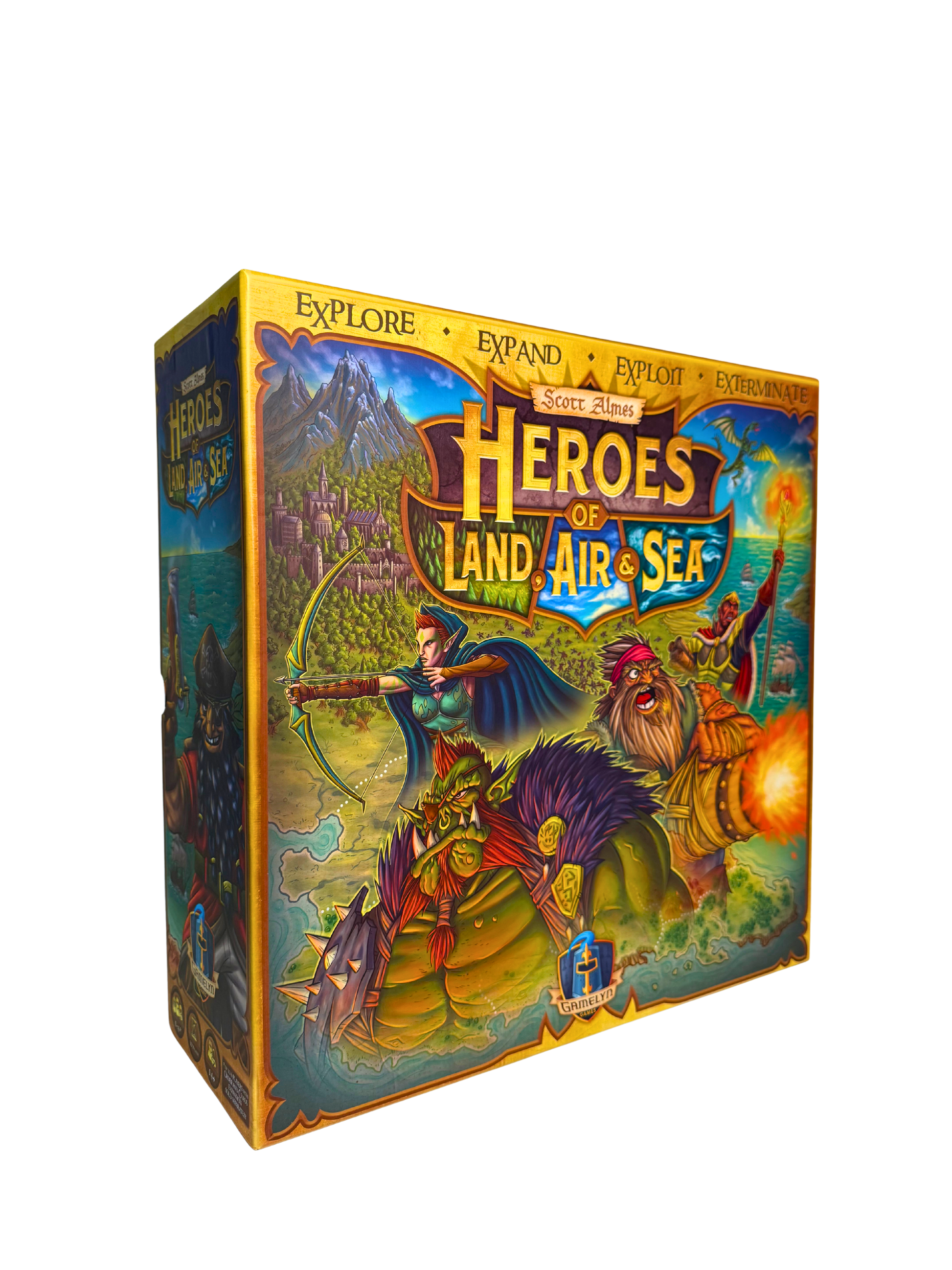 Heroes of Land, Air & Sea is an immersive and strategic 4X-style board game that transports players into a world of epic battles between orcs and humans, dwarves and elves, and warring kingdoms. With beautifully crafted miniatures, this game brings to life the thrilling tale of heroes who shape the course of war. In this game, players take on the role of one of these iconic factions, vying to expand their kingdom and conquer new territories. Every great kingdom starts small, and players begin their journey with just a humble town hall, a handful of peons, and a lone warrior. From this modest beginning, players must venture out, explore the surrounding lands, strengthen their workforce, build a formidable army, and develop their kingdom. This requires careful decision-making, resource management, and strategic warfare. As players progress and achieve milestones in their kingdom's development, they unlock a multitude of advantages. Peons evolve into mighty warriors, warriors ascend to become powerful heroes, and town halls transform into majestic castles. Players also gain access to water vessels and air vessels, as well as mythical creatures. By boarding these vessels and creatures with their units, players can traverse the expansive game board more swiftly and position their armies for devastating attacks.