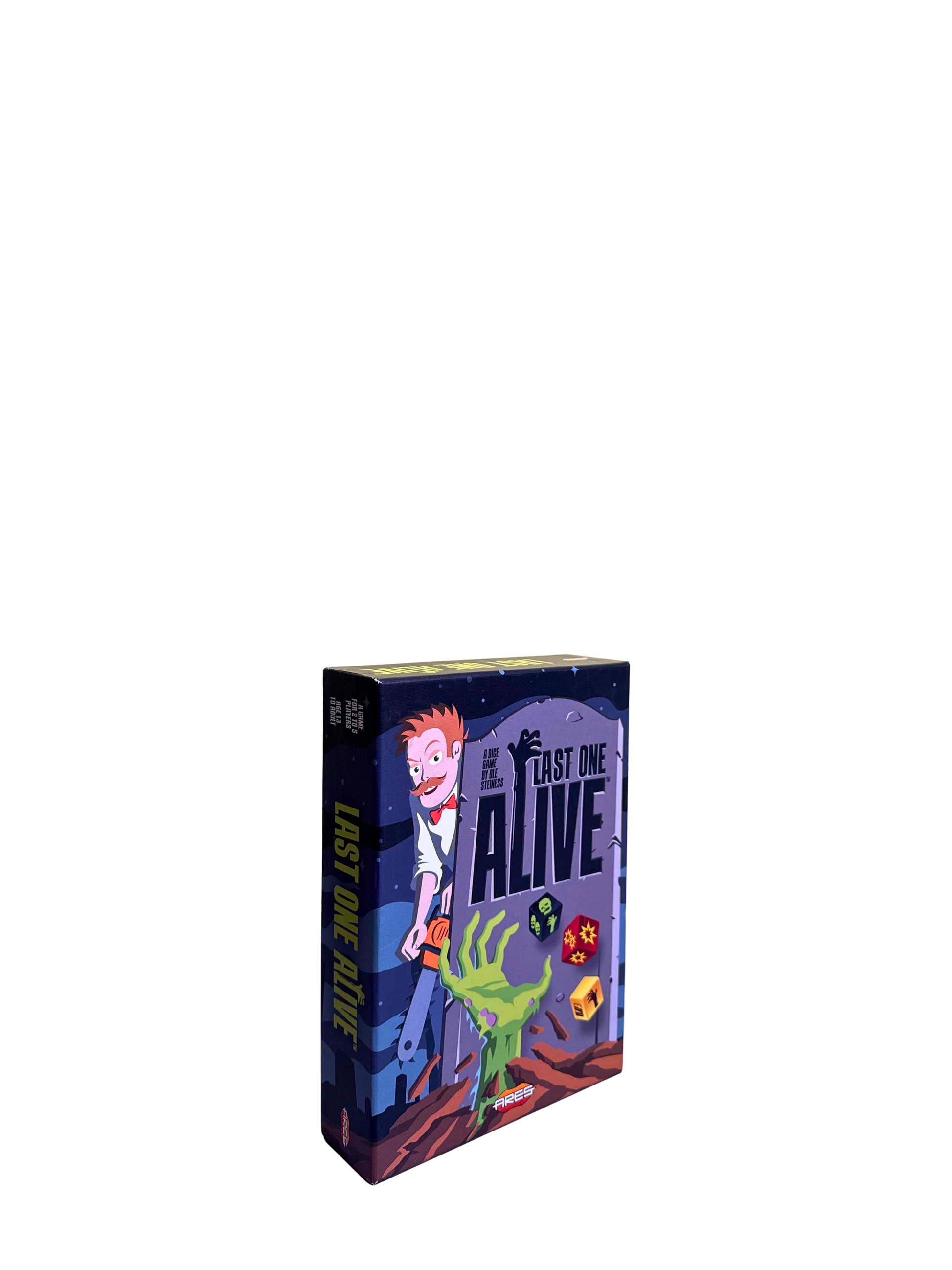 The zombie apocalypse has begun, will you be able to survive? Last One Alive is a fast and fun dice game for 2-5 players. Arm and barricade yourself, use that chainsaw, perform heroic feats... But most of all, try to get the zombies to kill the others before they kill you! Everything is allowed in order to be... the last one alive! Designed by Ole Steiness (Champions of Midgard, Police Precinct), and illustrated by Laura Neri and Francesco Mattioli, Last One Alive uses multiple different custom dice. Each turn, you will select which dice to roll: will you go scavenging, set up barricades, or shoot zombies? But the walking dead are all around, and most of the dice you roll can get you into an ambush. On top of that, as the zombie apocalypse escalates, more and more zombie dice will come into the game, and you must make sure they attack somebody else before they get you! Your only hope is to survive as long as you can. No worry about player elimination - Last One Alive is so fast that you will be soon playing again, even if you die!