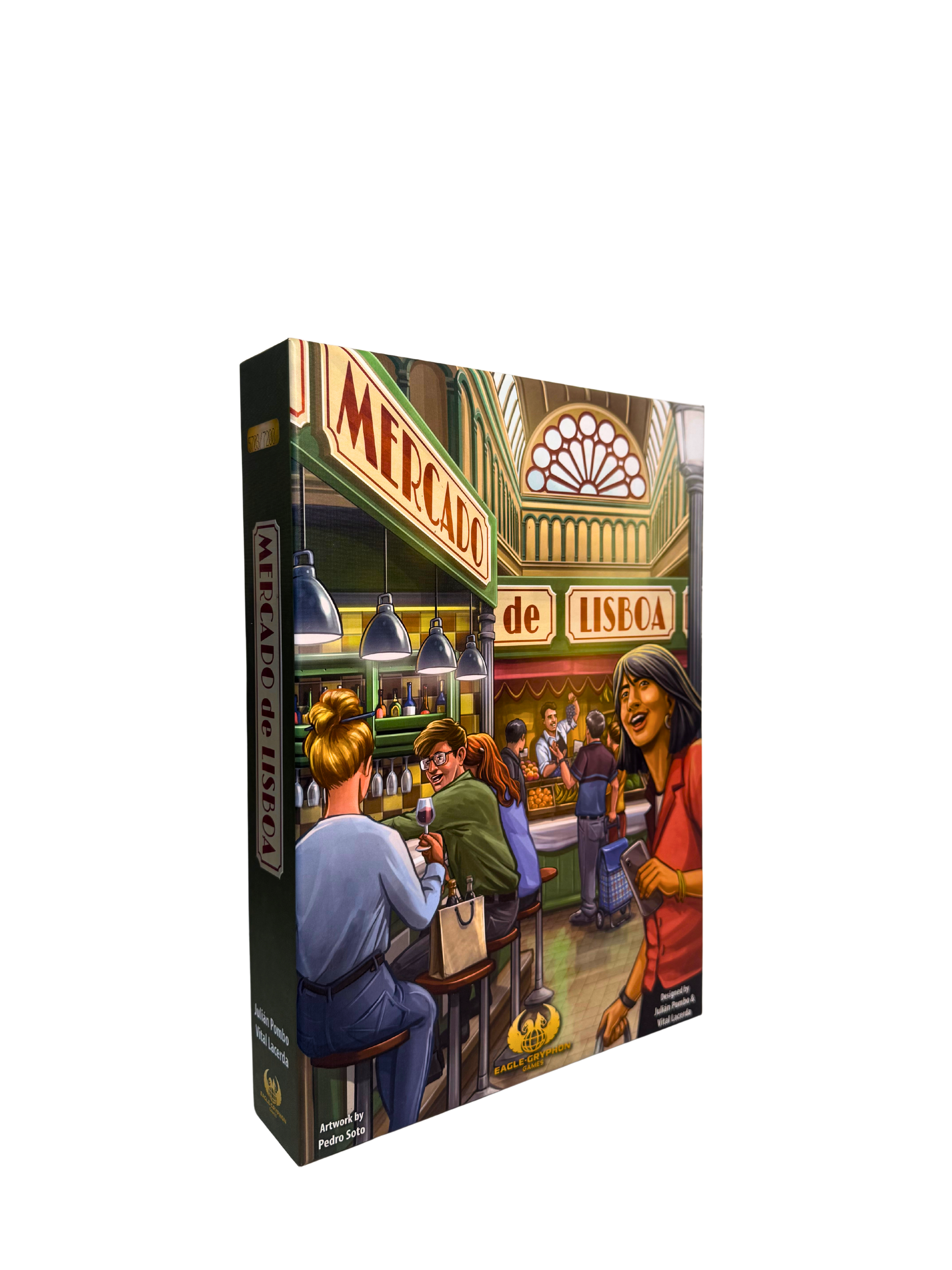 Modern day markets offers to their visitors various kind of stands, restaurants, and services. In Mercado de Lisboa, players buy stands in the market, open new businesses that influence those stands, and bring customers to them. Mercado de Lisboa is a thinky filler title, a tile-placement game based upon the Lisboa city-building system in which players pay money to own stands in the market, open restaurants next to them to improve their profit and bring in customers that earn money for players with matching stands. Mercado de Lisboa is a fast-paced game, very straightforward and easy to learn rules with deep tactical choices.