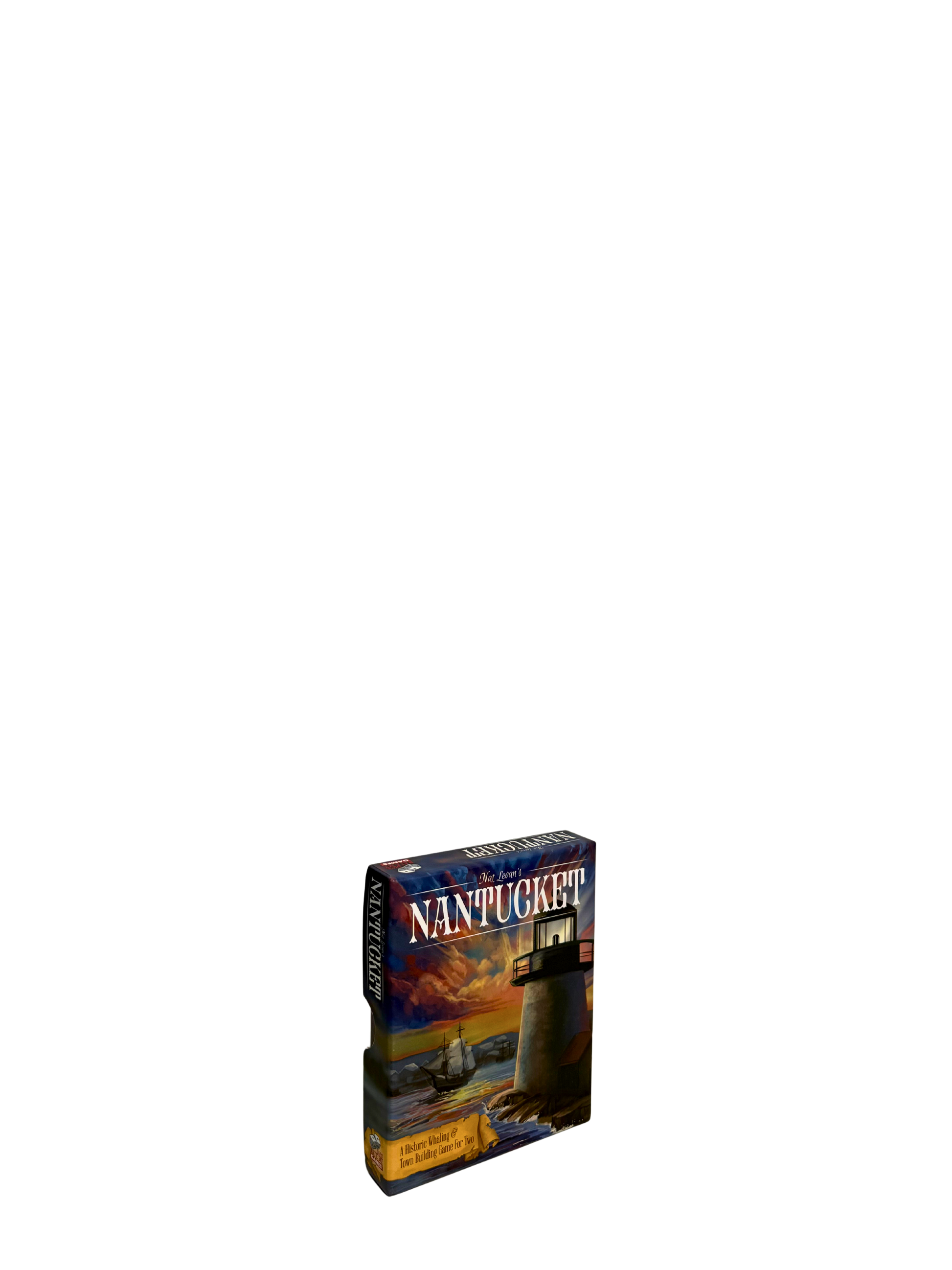 Nantucket Ñ a small, two-player game with a whaling theme Ñ takes you to "The Little Grey Lady of the Sea" during the early American whaling industry. You need just a few cards and coins to play in whatever port you find yourself. Mix and match two cards to form the modular board. Then use your single turn each round to carefully build the town and send out ships. After performing your actions, flip the coins on your ship to catch a whale. Play until the town is fully constructed, supplies run out, or the last whales are taken. Between buildings and earned coins, may the best captain win!