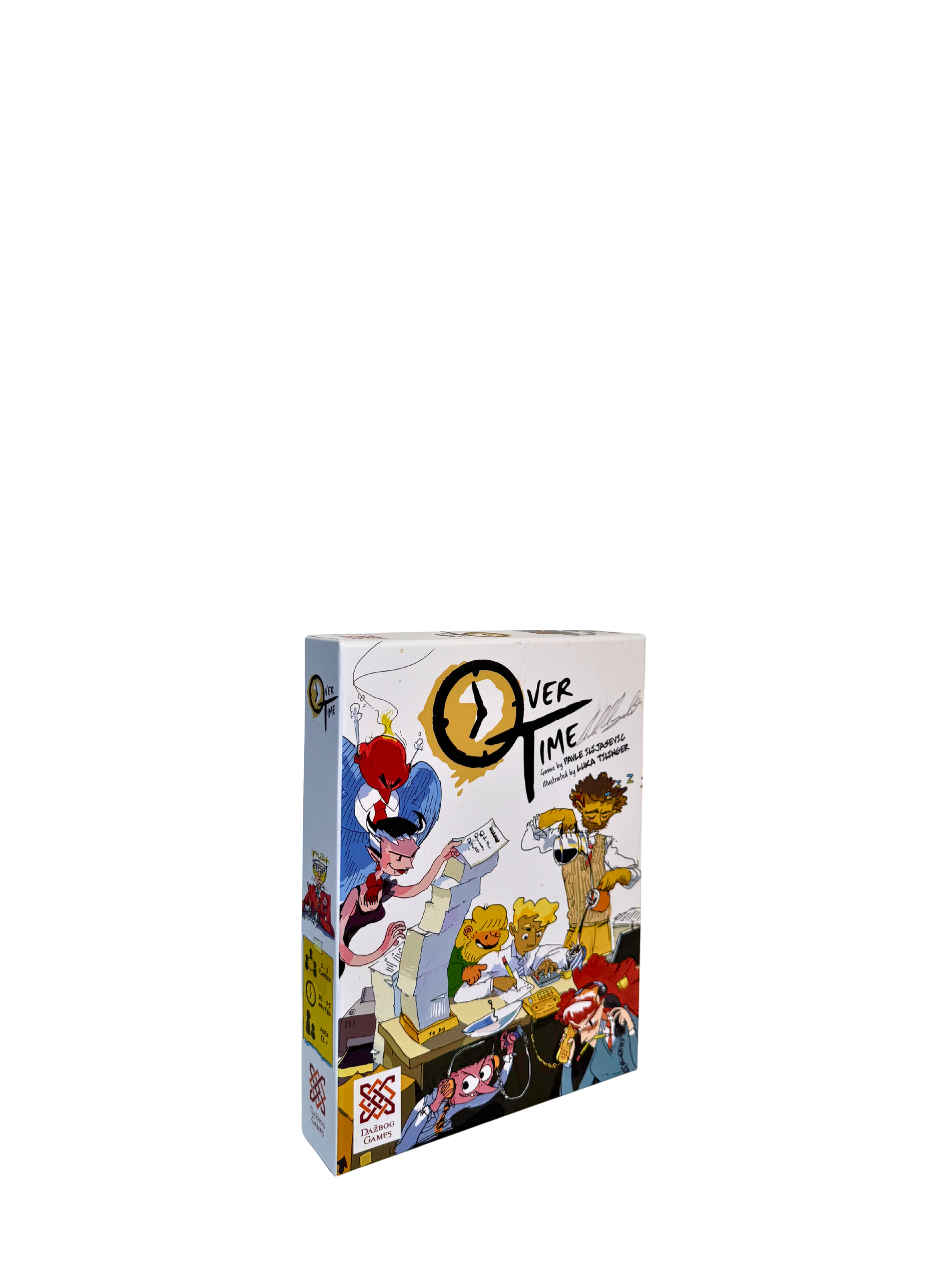 When the Boss tossed everyone a large pile of assignments all due tomorrow, there's not much choice but to stay overtime. Everyone just wants to go home, and will make sure they are the first to do so! In Overtime, players take the roles of office workers, trying to finish up their assignments and go home. Everyone starts off as an Average Joe, the ordinary white collar worker, but as opportunities present themselves, you can show your true nature by becoming those Employee stereotypes like the Office Buddy, the Slacker, or the annoying Energy Vampire! Be the first player to get rid off all your assignment cards to win: You can acheive this by working hard and honestly, or be shady and play foul by passing off your assignments to the other players... play the cards dealt to you as best as you can! Of course, everything happens under the watchful eye of the Boss, so plan carefully. All players draw from the same deck of cards, managing the resources they get to work and rest during their own turn, and interfere with their opponents during the turns of other players. A players actions depend on their Employee type, as it defines their action limit, card draw and hand size. The more you work, the more tired you get, making it harder to complete your tasks without resting to recharge. But while you take a break, other might use the opportunity to hand out their assignments to you, so watch out, and keep a Boss card in hand to defend yourself. Overtime is a satirical take on those all to familiar real life situations people regularly experience, but in the form of a fun and competitive race. The clock ticks down the turns, and if no player manages to finish their tasks by midnight, when the 8th turn ends, no one wins.