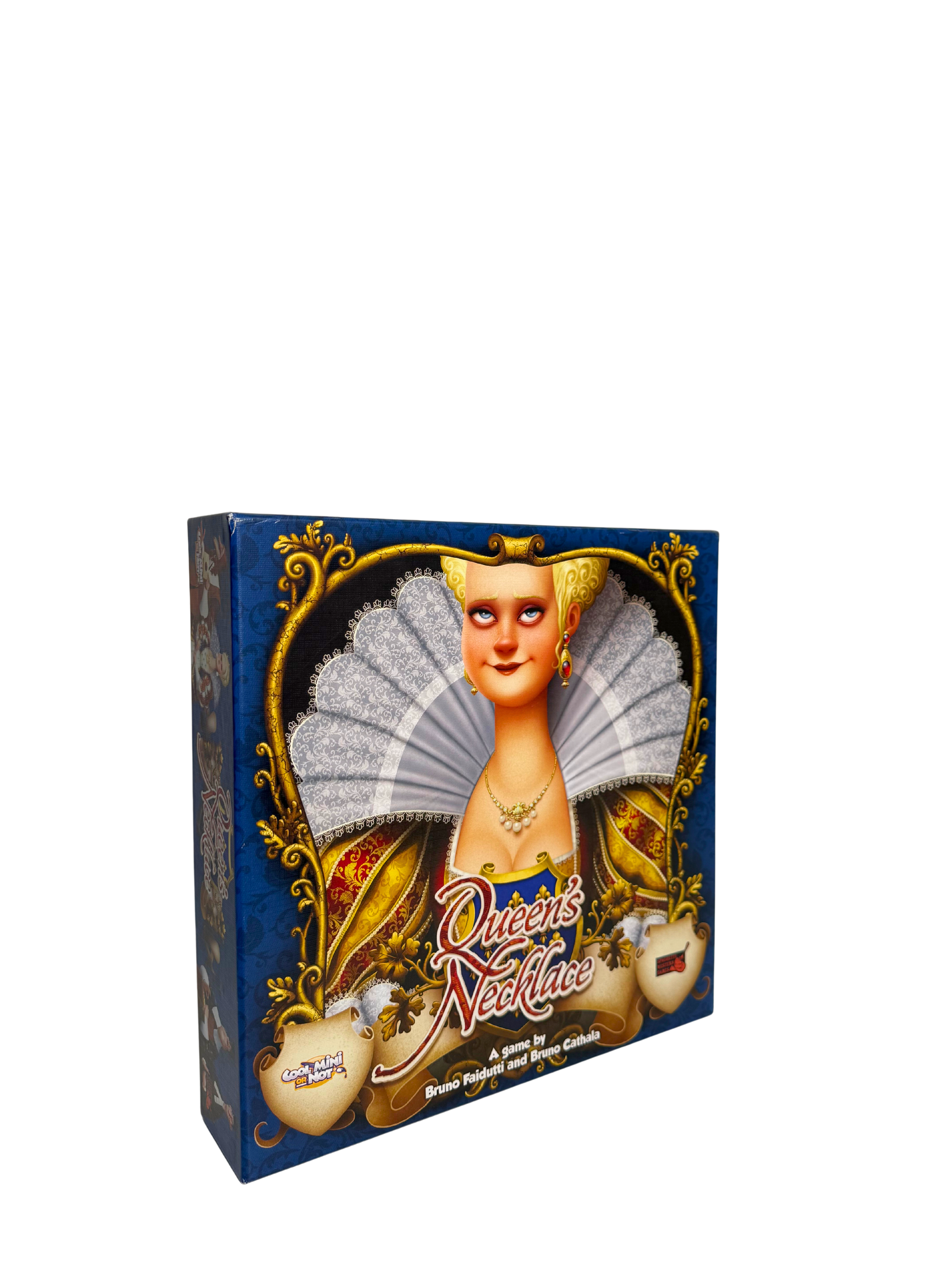 From the slums, where purse-snatchers and courtesans work their respective trades, to the inner salons of the Louvre, where confessors, royal astrologers, musketeers, and court favorites mingle and scheme in hushed conversations, the position of King's Jeweler has suddenly become a lot more dangerous! Set in Paris, on the eve of the French Revolution, Queen's Necklace is a game of gem-selling, influence, and intrigue at the court. Two to four players compete in the role of royal jeweler to sell rare jewels to the Queen and her court. Jeweler's loupe in hand, you must decide how best to spend your hard-earned ducats: acquiring beautiful gems (diamonds, emeralds, and rubies); or buying the favors of the various court followers. After three years of craftsmanship, the jeweler who sells the most precious gems and builds the largest fortune will receive the coveted title of King's Jeweler and a place at the court!