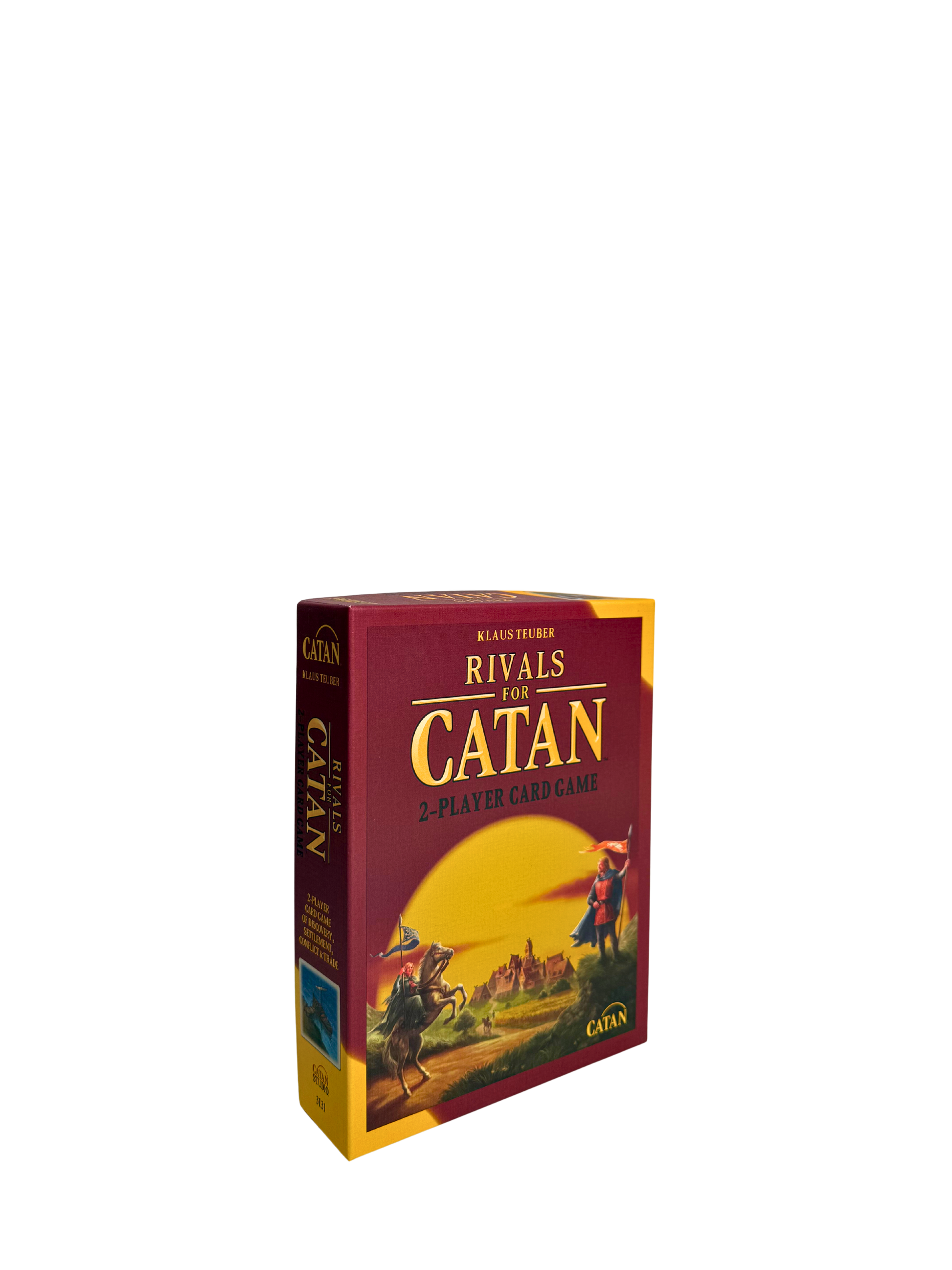 The Rivals for Catan is a reimplementation of Catan Card Game. The Rivals for Catan was released in German in September of 2010, on the 15th anniversary of the original card game. An English edition was released in the fourth quarter of 2010. The designer of the game, Klaus Teuber, has stated that he completely reworked many of the original card game's mechanics to make it easier for newcomers to play the game. Each player portrays a prince for Catan, developing their individual provinces and competing to build a more successful province than the other. The basic mode of play is similar to the original Catan Card Game, where players expand their provinces by building settlements connected by roads. Players may also build expansions in their settlements that aid them in various ways, or upgrade their settlements to cities to allow more expansions to be built. They build these additions by using resources that they accumulate each turn, which are determined by the roll of a die. Cards are drawn on each turn to replenish the players' hands. The players may also use action cards that directly affect either their own province or their opponent's province. The Rivals for Catan features a reduced pool of cards, without the more aggressive style of action cards found in the original Catan Card Game. Therefore, all action cards will be able to be used from the beginning of the game unlike in the original card game.