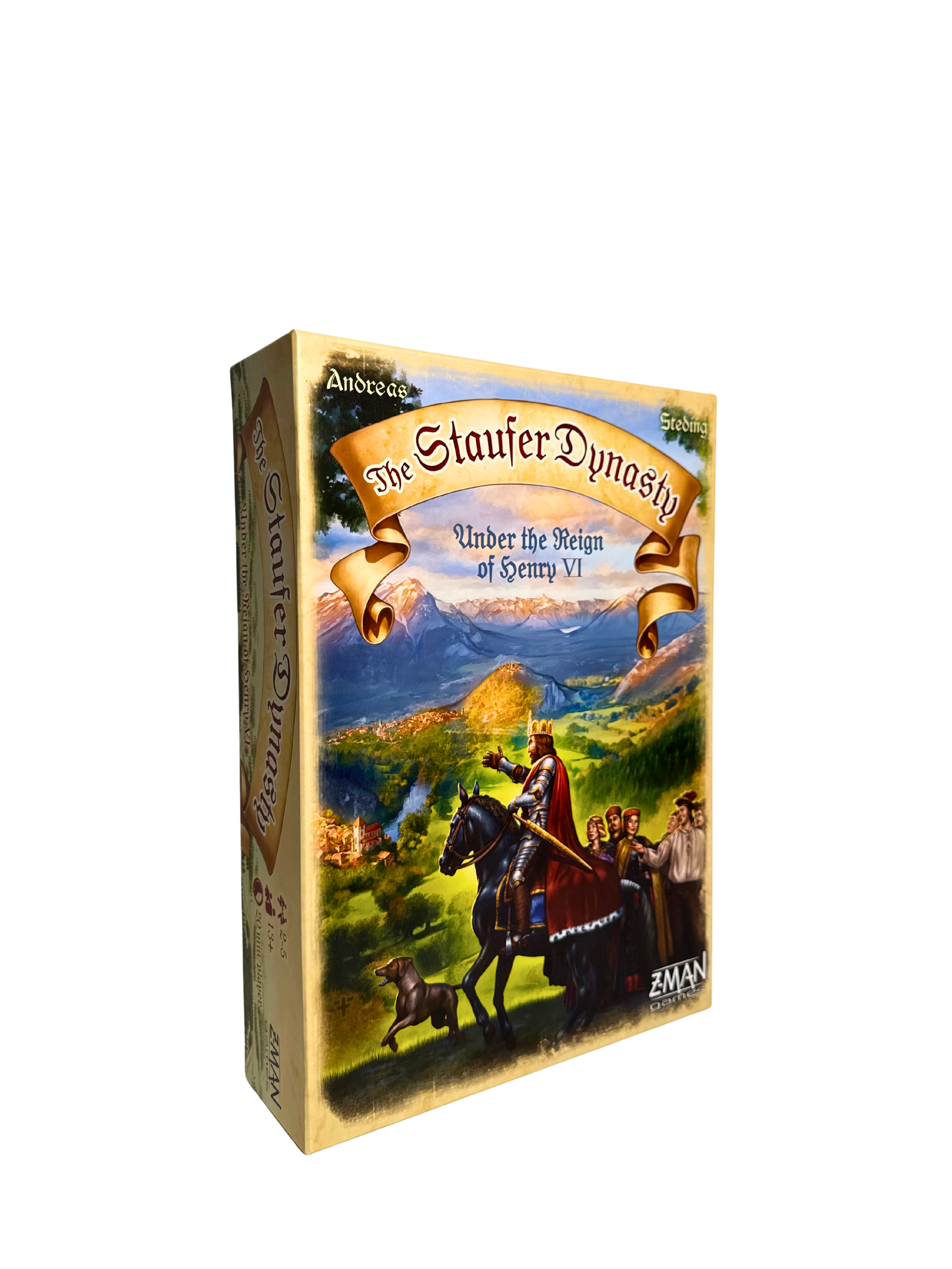 In The Staufer Dynasty, the players are nobles in the 12th century, accompanying Henry VI on his tour of the areas of Europe brought under control by the Staufer family, an area that included much of modern-day Germany, from the Baltic Sea in the north to Sicily in the south. You're eager to improve your own lot in the land by placing envoys and nobles in positions of power in the six regions represented in this game.