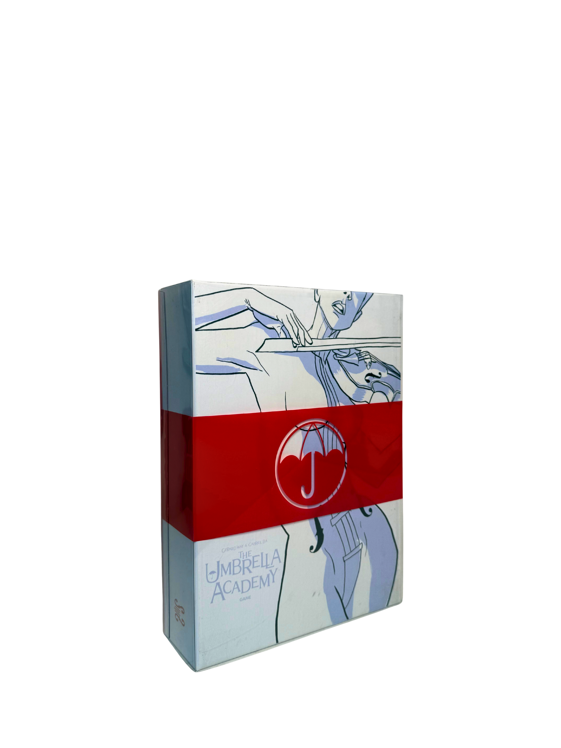 The Umbrella Academy Game brings the captivating world that Gerard Way and Gabriel B‡ created to your tabletop and lets you play as the seven siblings who possess unusual powers in a fun and exciting card game. In the game, each player picks their favorite family member to act as their hero card, then places a life card underneath it. Each player gets five hero attack cards. Shuffle the villain cards and place them in the middle of the play area. Put the deck of villain attack cards and the deck of dysfunctional family cards next to the villain cards. Put the final battle cards to the side. The first player takes the turn marker card and turns over the top dysfunctional family card, which affects this round of the game. Lay out the number of villain attack cards as shown on the first villain card. Now each player takes their turn, beginning with the player with the marker card. Players pick a card from their hand to attack a villain, heal their hero, or put a hero story card into effect. Once all the villain attack cards have a hero attack card played under them, players can use their hero's special ability. Gameplay proceeds until all the villains have been defeated (or no family members are alive). Then it's time for the final battle. The defeated villains come back to life and players attack!