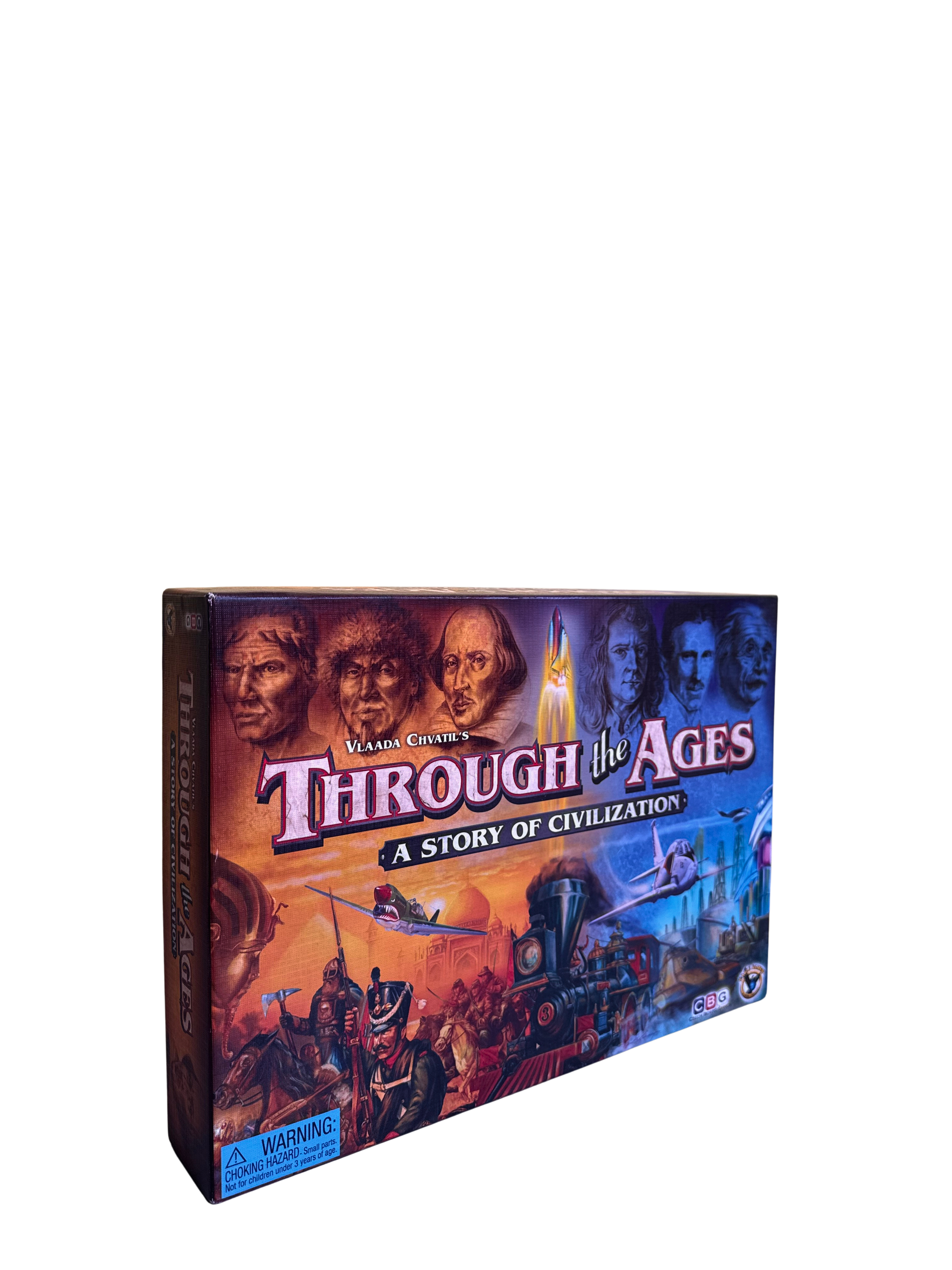 Through the Ages: A New Story of Civilization is the new edition of Through the Ages: A Story of Civilization, with many changes small and large to the game's cards over its three ages and extensive changes to how military works. Through the Ages (TTA) is a civilization building game. Each player attempts to build the best civilization through careful resource management, and by: discovering new technologies, electing competent leaders, building wonders and maintaining a strong military. Weakness in any area can be exploited by your opponents. The game takes place throughout the ages, beginning in the age of antiquity and ending in the modern age. One of the primary mechanisms in TTA is card drafting. Technologies, wonders, and leaders come into play and become easier to draft the longer they are in play. In order to use a technology you will need enough science to discover it, enough food to create a population to man it and enough resources (ore) to build the building to use it. While balancing the resources needed to advance your technology you also need to build a military. Military is 'built' in the same manner as civilian buildings. Players that have a weak military will be preyed upon by other players. There is no map in the game so you cannot lose territory, but players with a stronger military will steal resources, science, kill leaders, take population or culture. It is very difficult to win with a strong military, but it is very easy to lose because of a weak one. Victory is achieved by the player whose nation has the most culture at the end of the modern age.