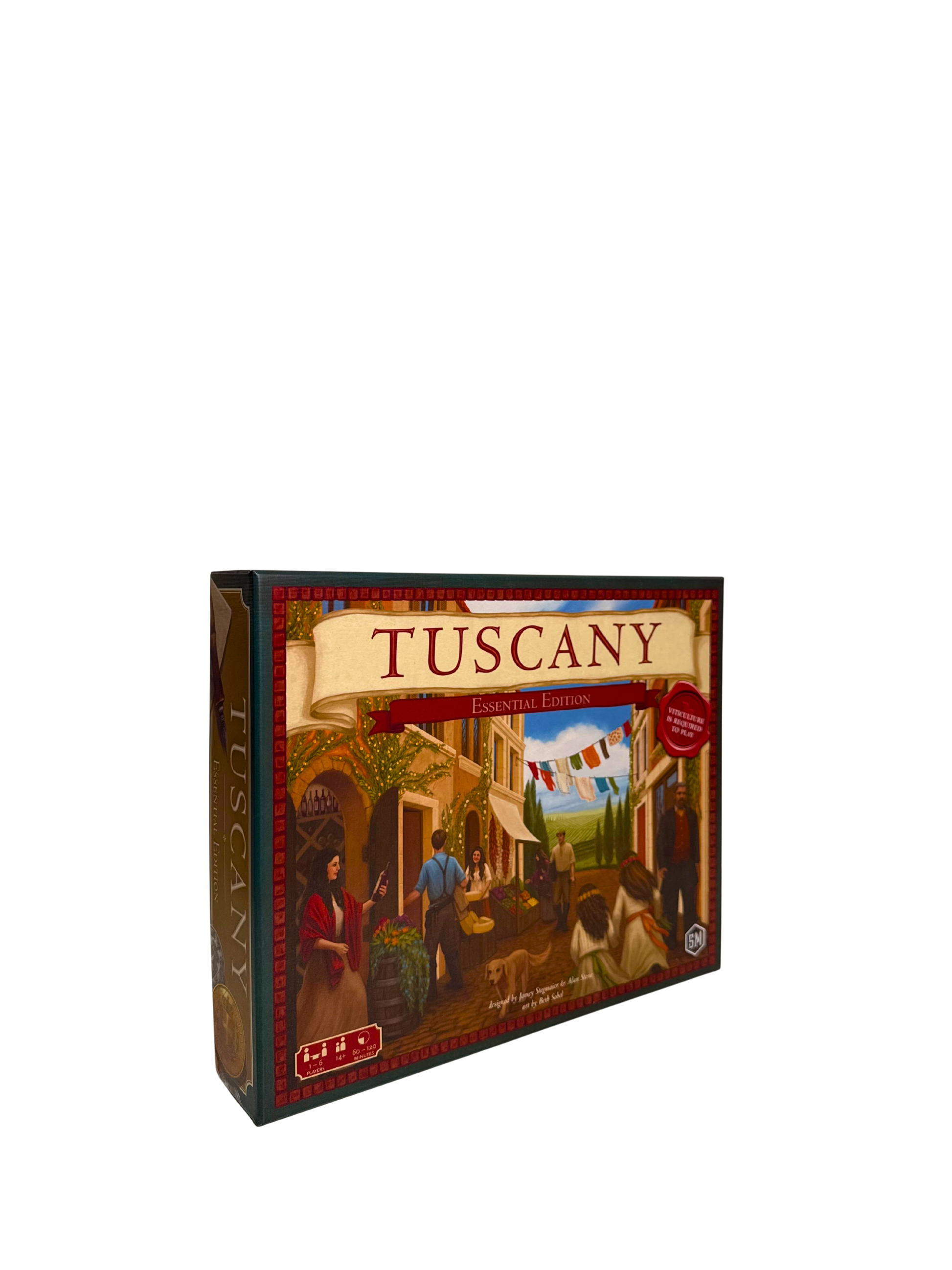 In Viticulture, the players find themselves in the roles of people in rustic, pre-modern Tuscany who have inherited meagre vineyards. They have a few plots of land, an old crush pad, a tiny cellar, and three workers. They each have a dream of being the first to call their winery a true success. The players are in the position of determining how they want to allocate their workers throughout the year. Every season is different on a vineyard, so the workers have different tasks they can take care of in the summer and winter. There's competition over those tasks, and often the first worker to get to the job has an advantage over subsequent workers. Fortunately for the vineyard owners, people love to visit wineries, and it just so happens that many of those visitors are willing to help out around the vineyard when they visit as long as you assign a worker to take care of them. Their visits (in the form of cards) are brief but can be very helpful. Using those workers and visitors, the vineyard owners can expand their vineyards by building structures, planting vines, and filling wine orders, working towards the goal of running the most successful winery in Tuscany. Viticulture Essential Edition includes the base game of Viticulture and a few of the most popular modules from the original Tuscany expansion, including Mamas & Papas, Fields (previously known as Properties), expanded and revised Visitors, and Automa cards for a solo variant, along with a few minor rule changes.